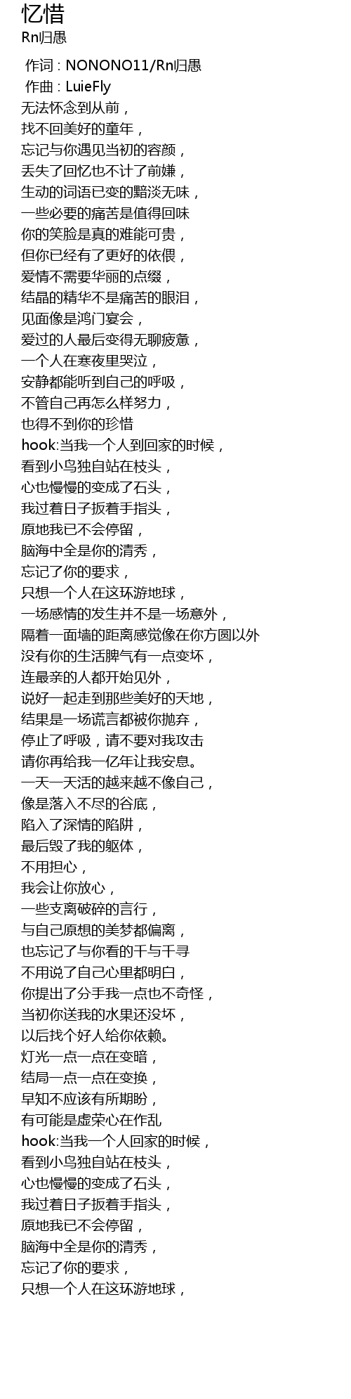 | [00:00.000] | 作词 : NONONO11/Rn归愚 |