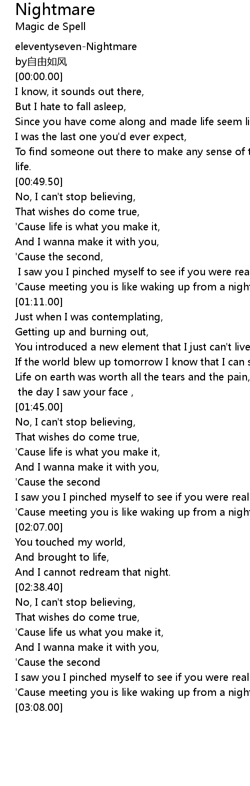 | [03:01.50] | ' Cause meeting you is like waking up from a nightmare |