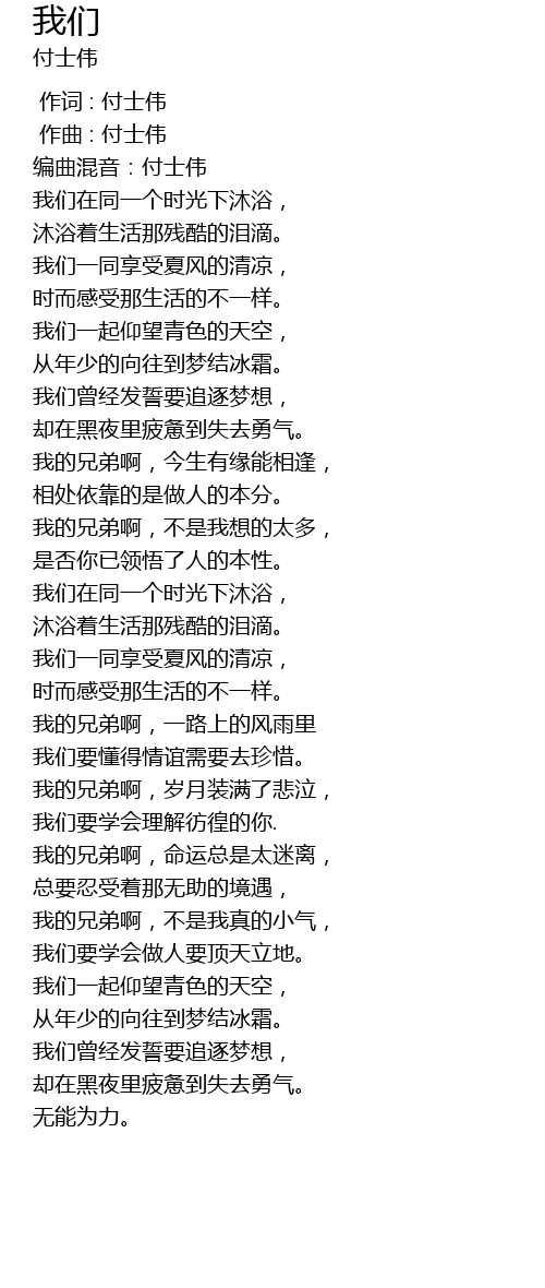| [01:45.413] | 我的兄弟啊,不是我想的太多, |