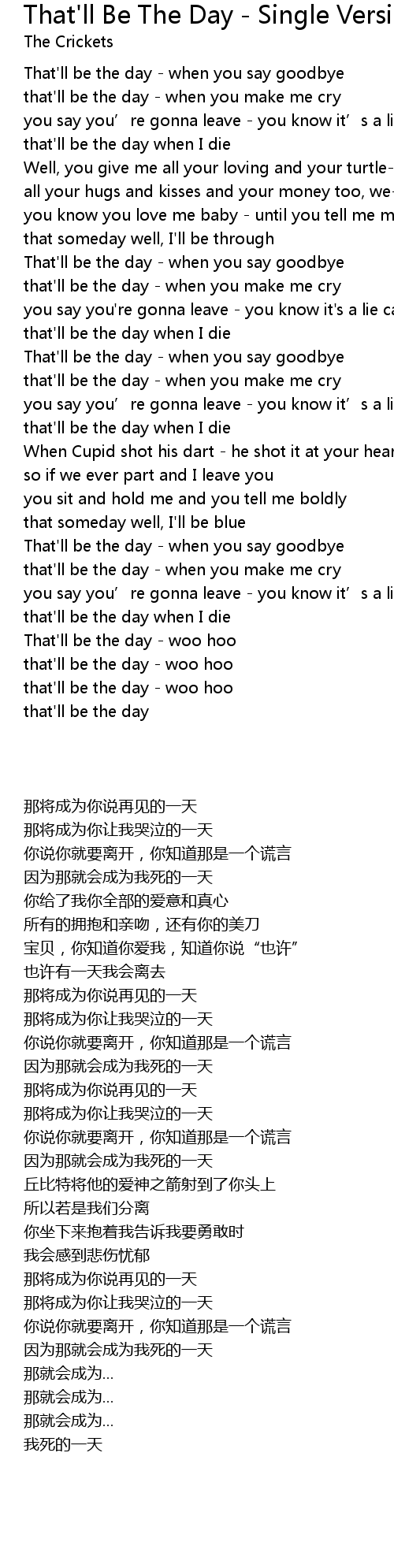 | [00:35.72] | That' ll be the day when you say goodbye |