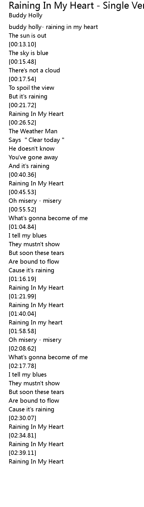 | Song | Raining In My Heart - Single Version (Stereo) |