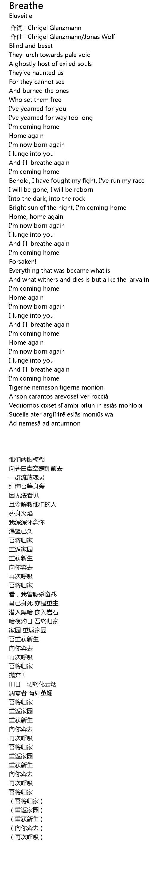 | [00:01.000] | zuo qu : Chrigel Glanzmann Jonas Wolf |