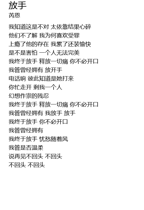 | [00:49.65] | 我终于放手 释放一切痛 你不必开口 |