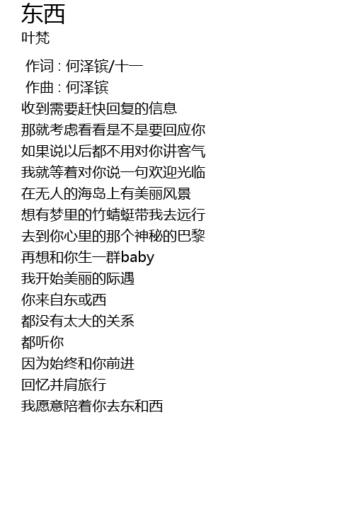 | [00:52.108] | 我愿意陪着你去东和西 |