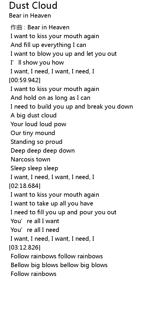 | [00:00.000] | 作曲 : Bear in Heaven |
