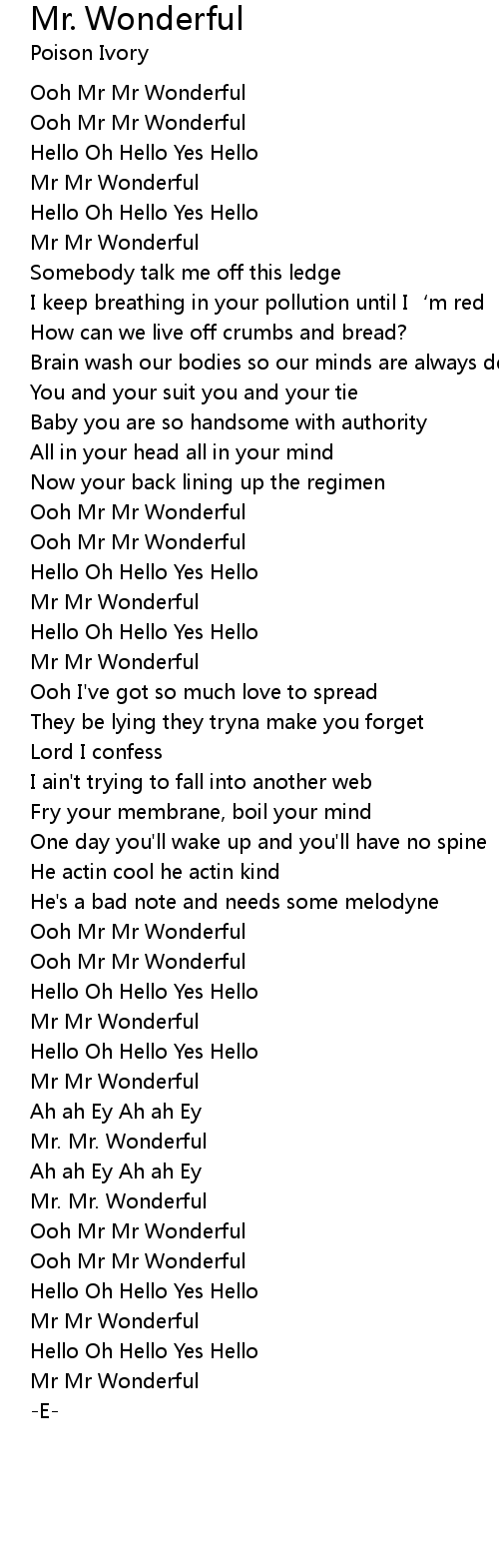 | [00:21.370] | Ooh Mr Mr Wonderful |