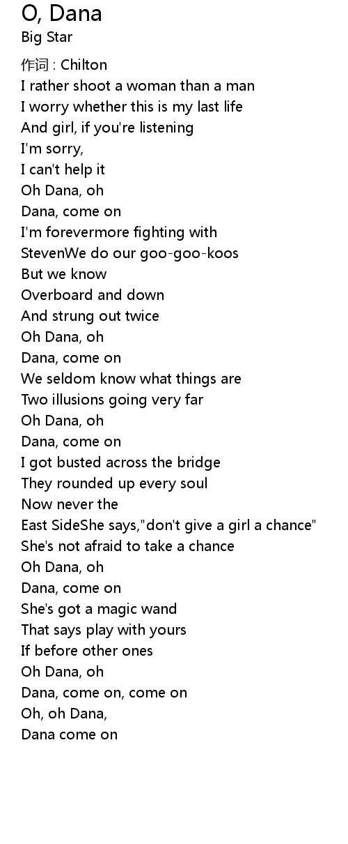 | Oh, oh Dana, | |