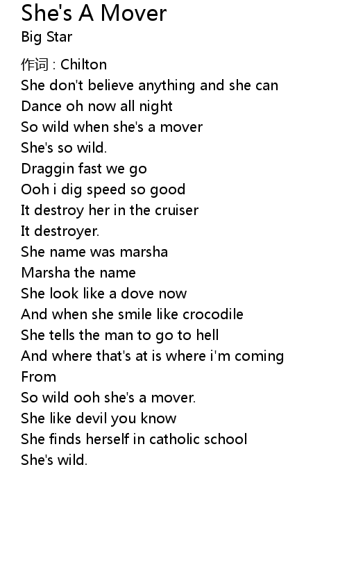 | So wild ooh she' s a mover. | |