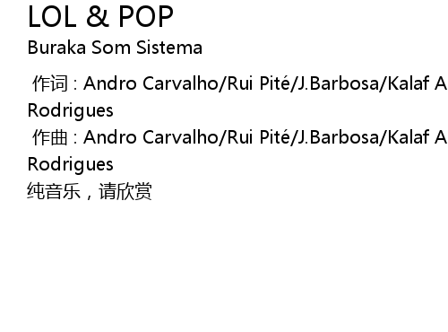 | [00:01.000] | 作曲 : Andro Carvalho/Rui Pité/J.Barbosa/Kalaf Angelo/Karla Rodrigues |