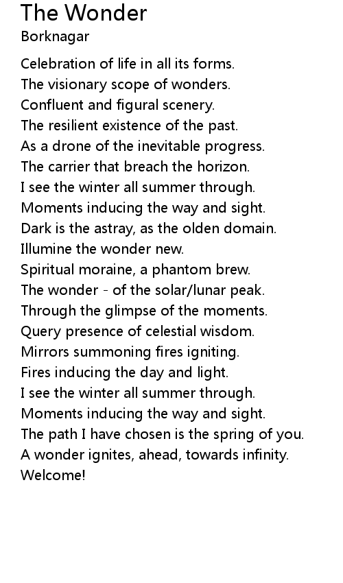 | Illumine the wonder new. | |