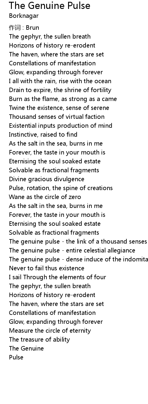| The genuine pulse entire celestial allegiance | |