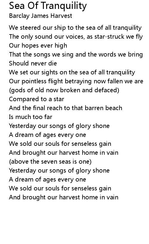 We steered our ship to the sea of all tranquility |