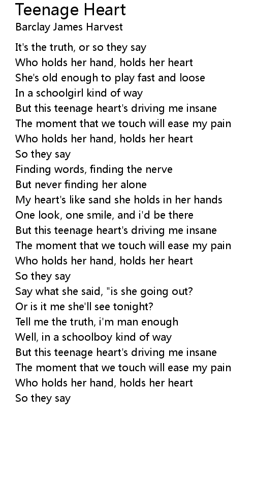 But this teenage heart's driving me insane |