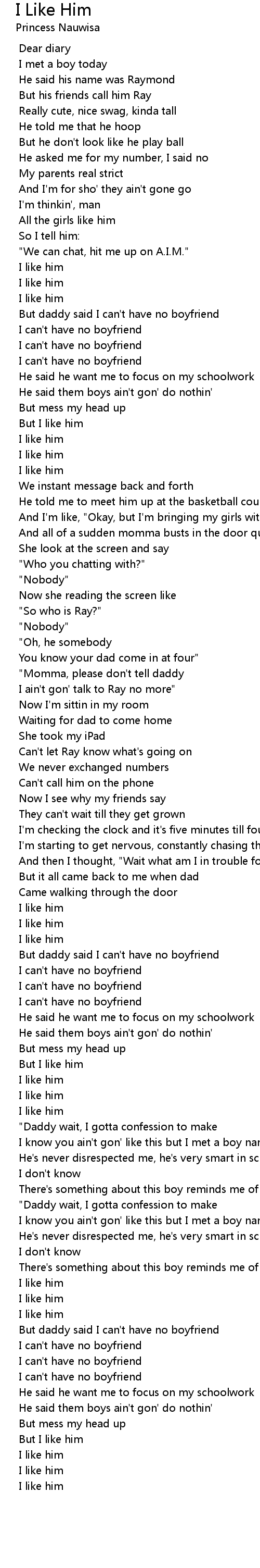 But daddy said I can't have no boyfriend |