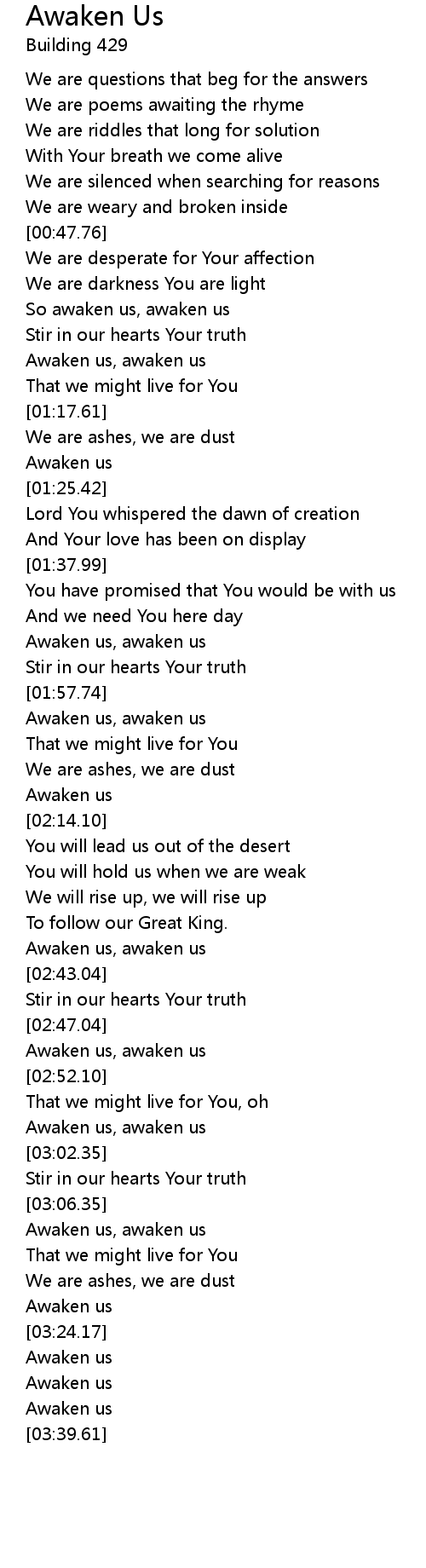 So awaken us, awaken us |