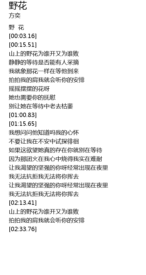 | [02:16.45] | 山上的野花为谁开又为谁败 |