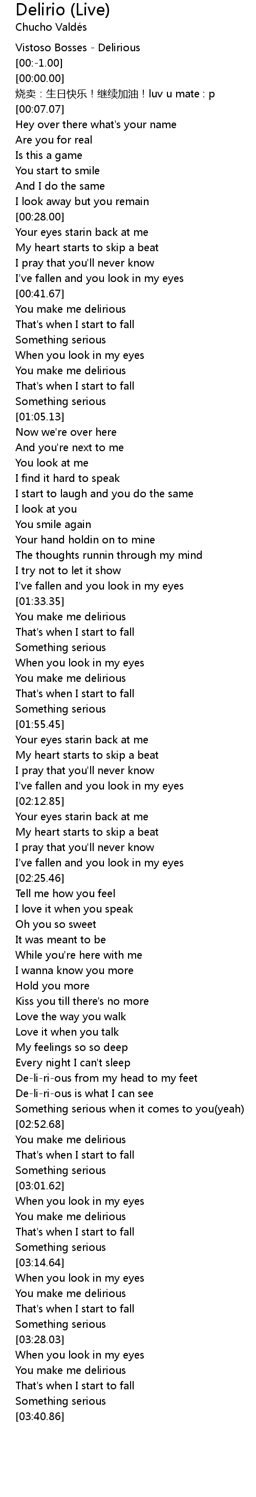 | [03:05.69] | You make me delirious |