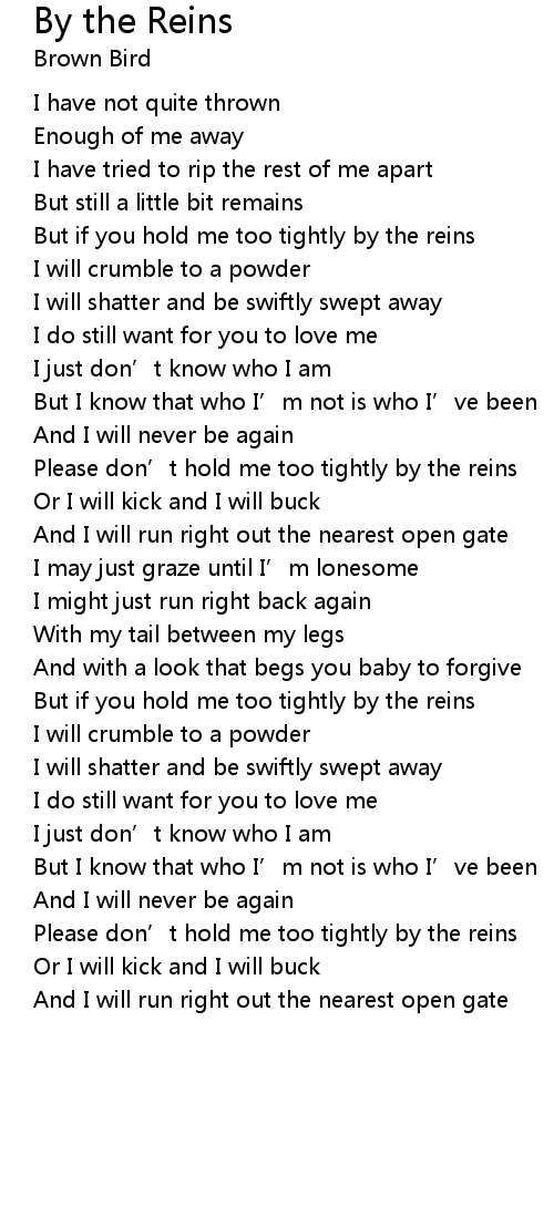 | Please don' t hold me too tightly by the reins | |