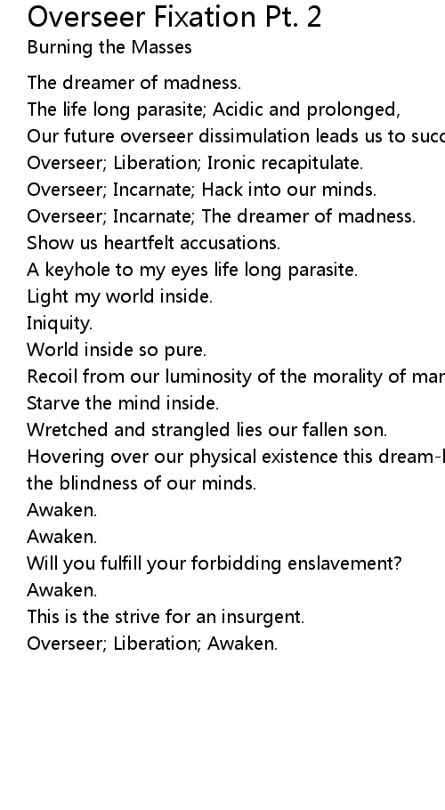Overseer; Liberation; Ironic recapitulate. |