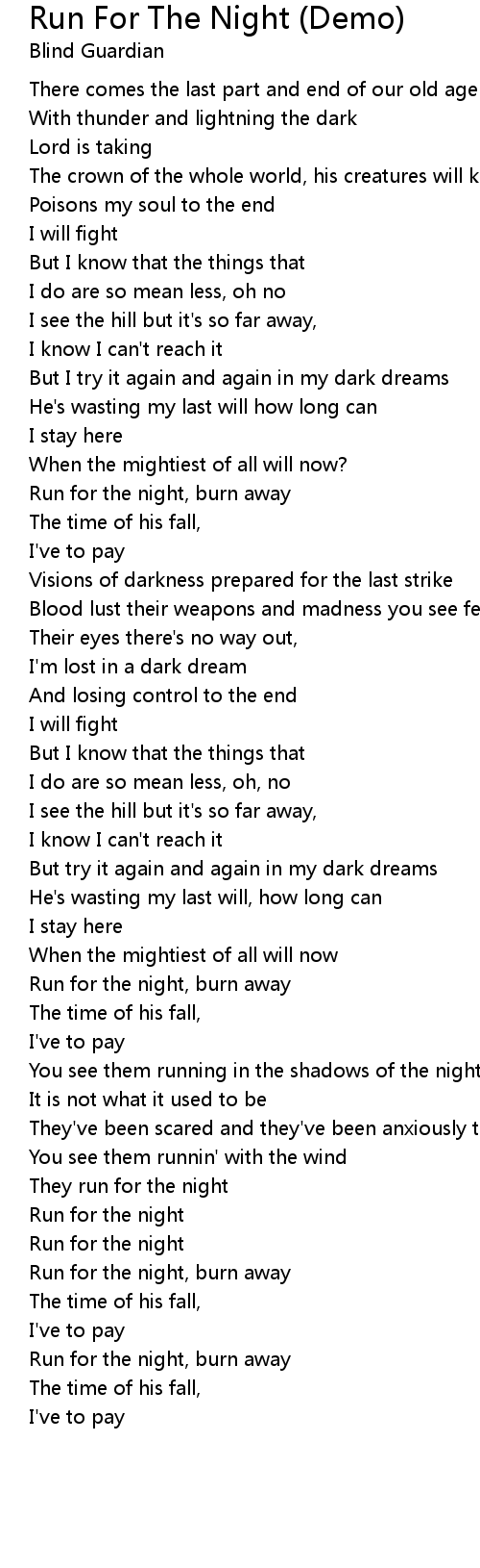 Run for the night, burn away |