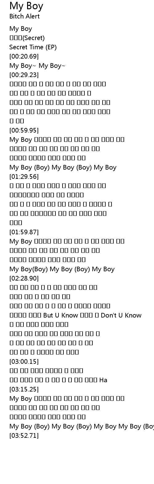 | [03:37.52] | My Boy (Boy) My Boy (Boy) My Boy My Boy (Boy) (Boy) My Boy |