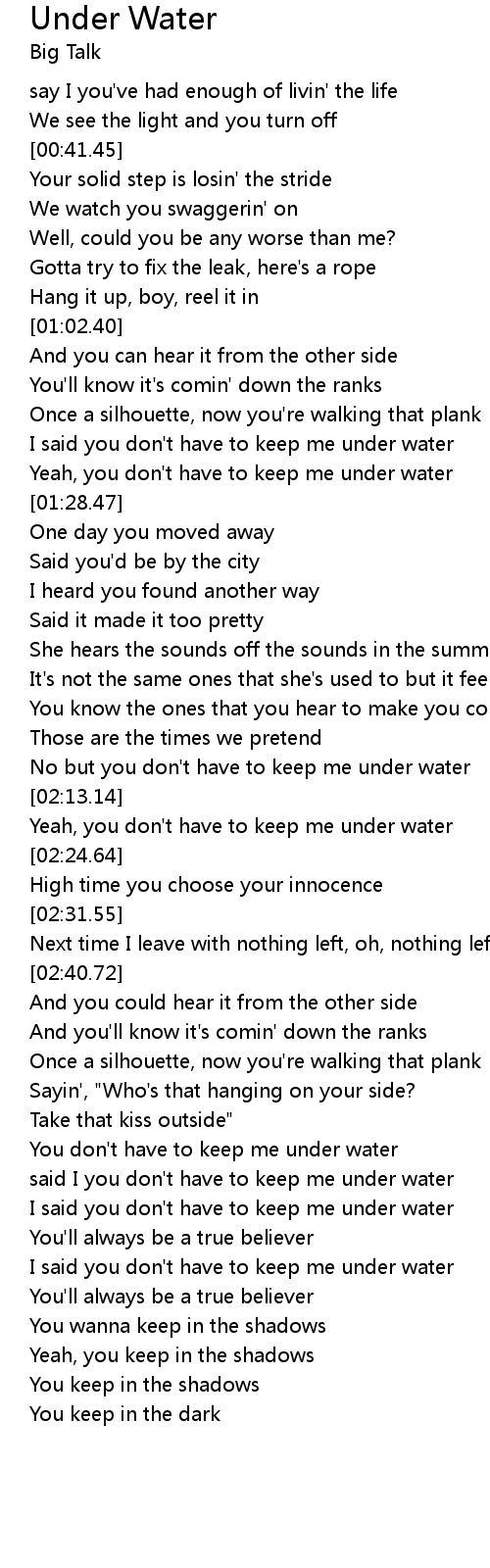 | [02:15.47] | Yeah, you don't have to keep me under water |
