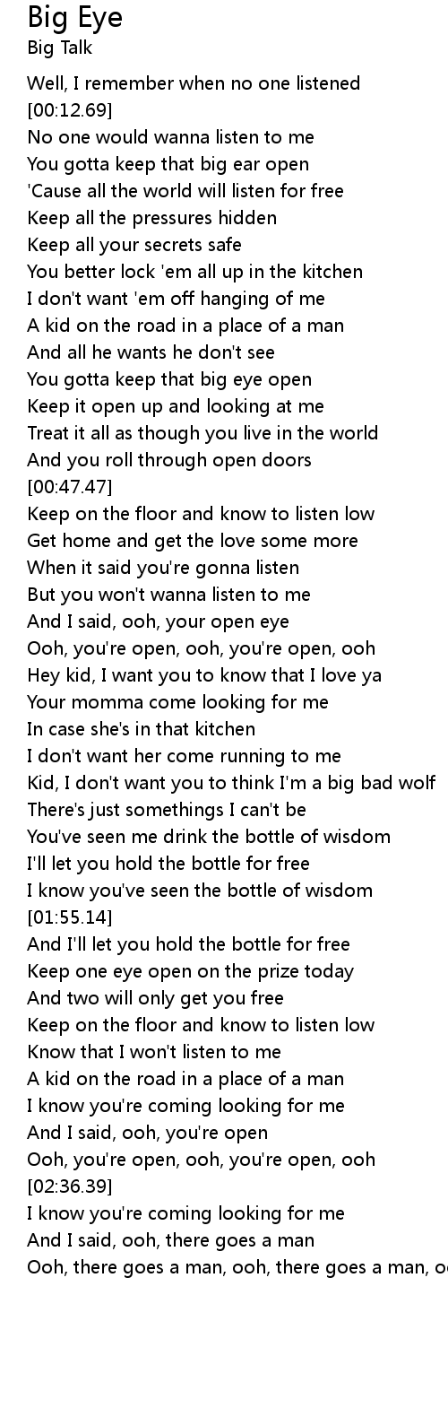 | [00:37.67] | You gotta keep that big eye open |