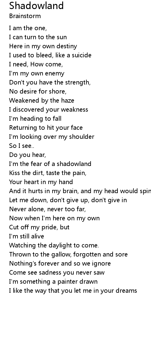 I'm the fear of a shadowland |