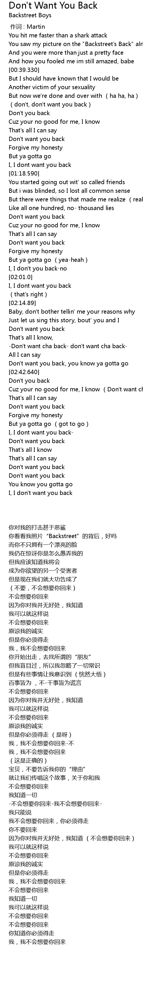 | [02:31.950] | Don' t want cha back don' t want cha back |