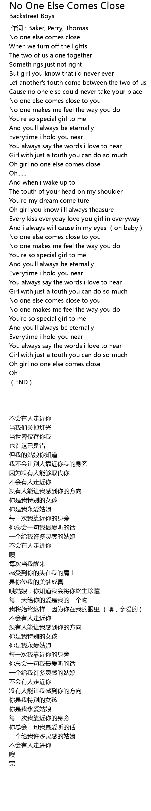 | [02:10.900] | No one else comes close to you |