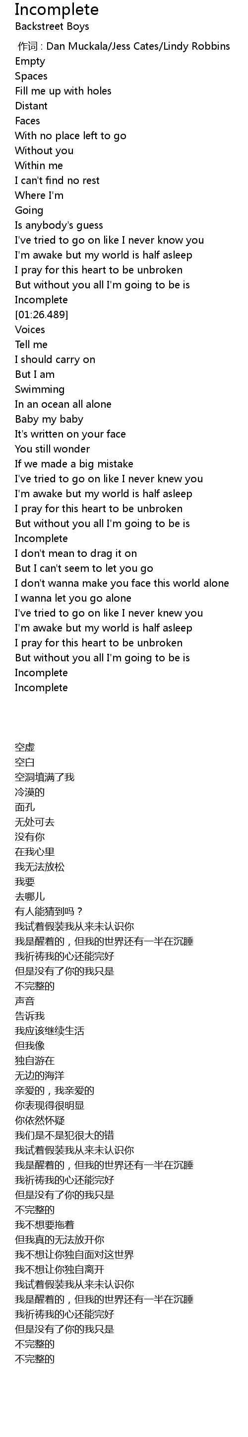| Song | Incomplete |