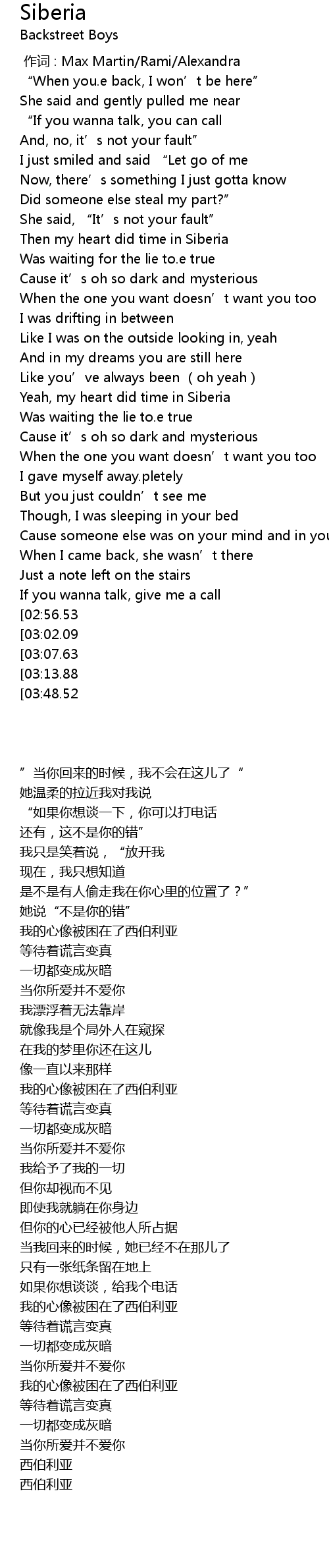 | [03:54.21][03:48.52] | Siberia |