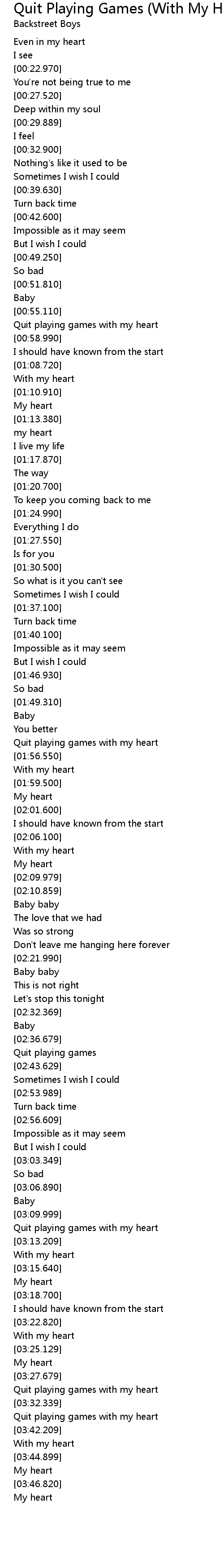 | [03:39.269] | Quit playing games with my heart |