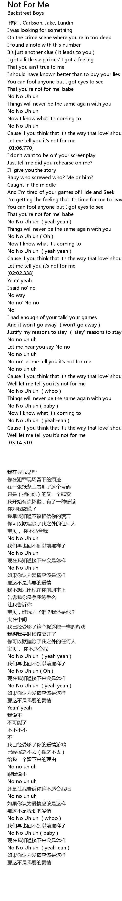 | [01:40.698] | No No Uh uh yeah yeah |