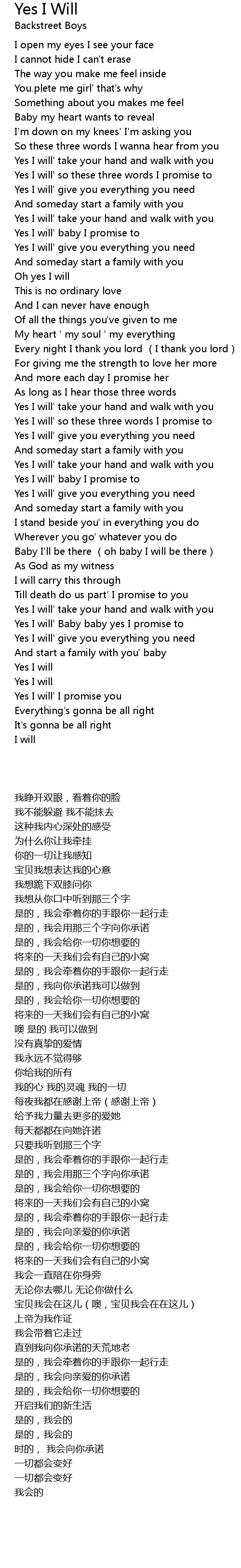 | [03:09.250] | Yes I will' Baby baby yes I promise to |