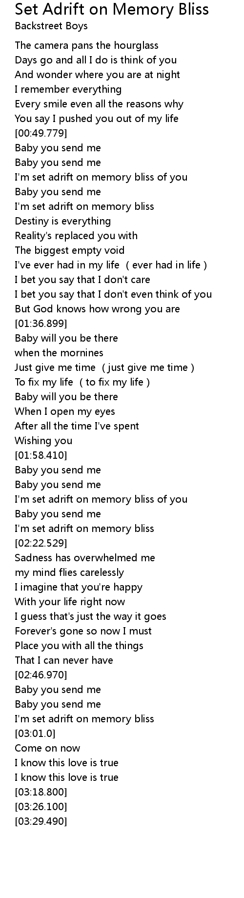 | [00:59.399] | I' m set adrift on memory bliss of you |