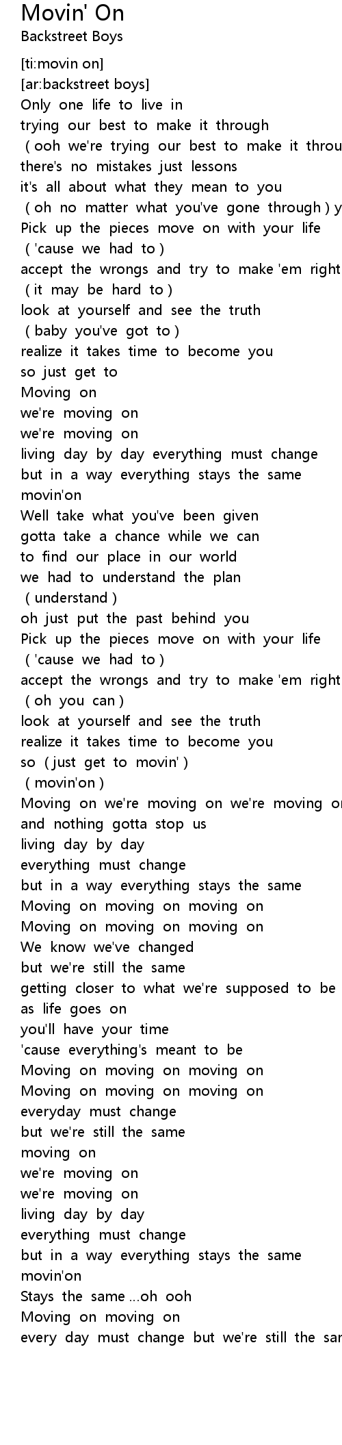 | [01:50.406] | Moving on we' re moving on we' re moving on |