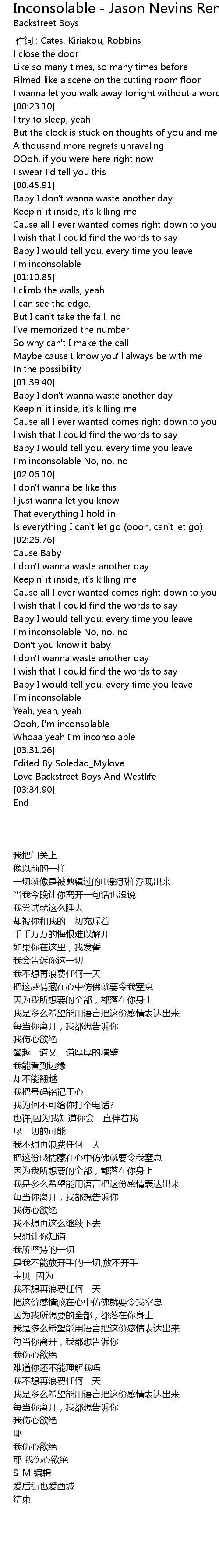 | [03:20.63] | Whoaa yeah I' m inconsolable |