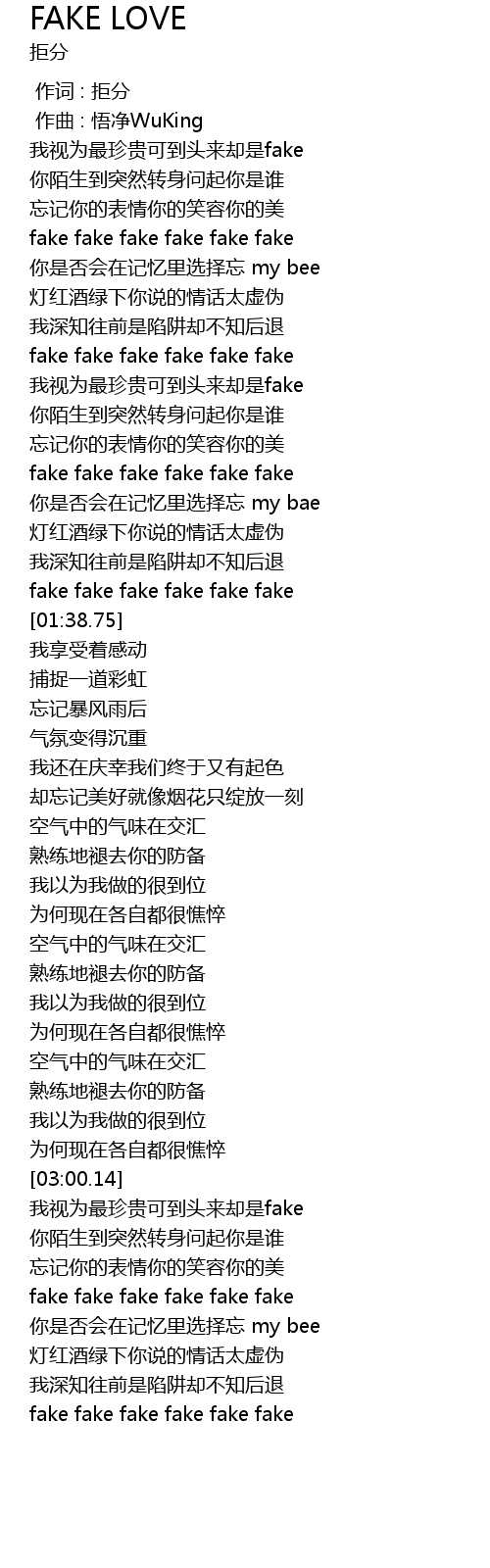| [03:01.35] | 我视为最珍贵可到头来却是fake |