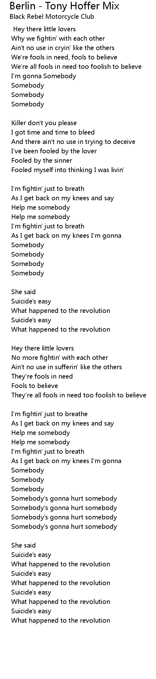 Somebody's gonna hurt somebody |