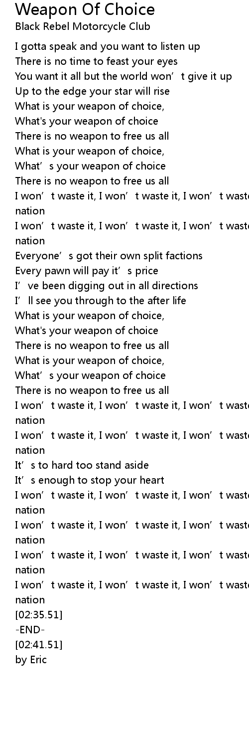 | [00:34.25] | What' s your weapon of choice |