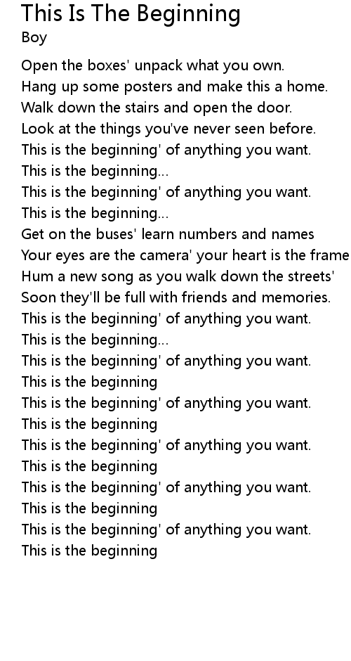 | [00:35.23] | This is the beginning' of anything you want. |