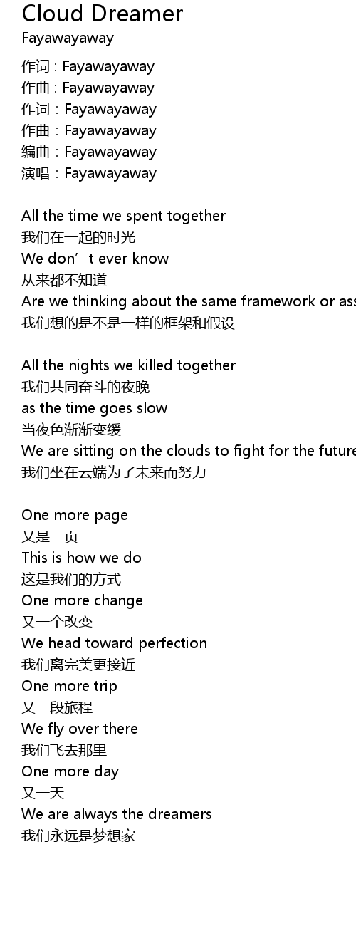 | 作词:Fayawayaway | |