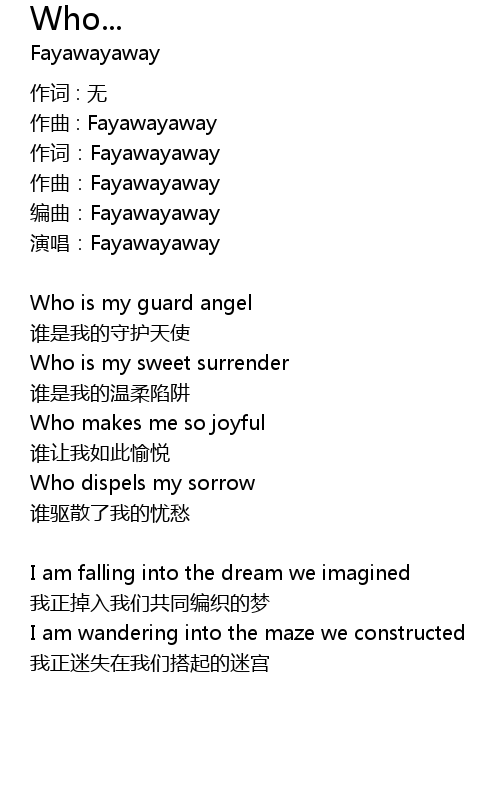 | 作词:Fayawayaway | |