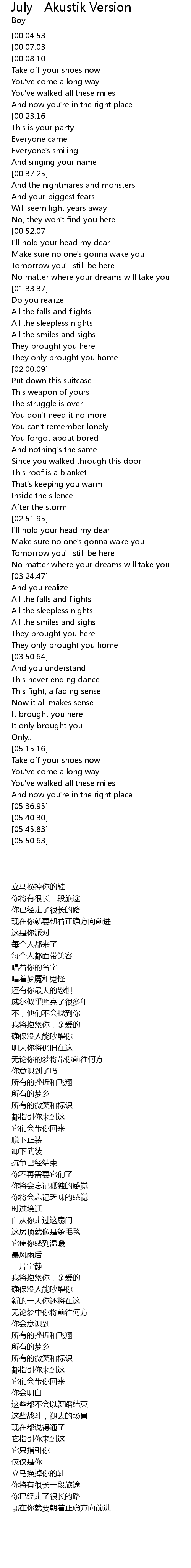 | [05:19.88] | Take off your shoes now |