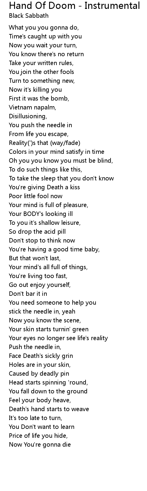 Hand Of Doom - Instrumental Lyrics