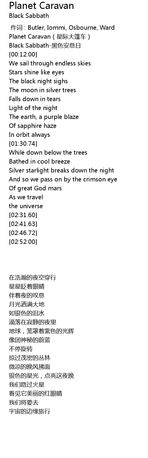 | [00:00.75] | Planet Caravan(星际大篷车) |