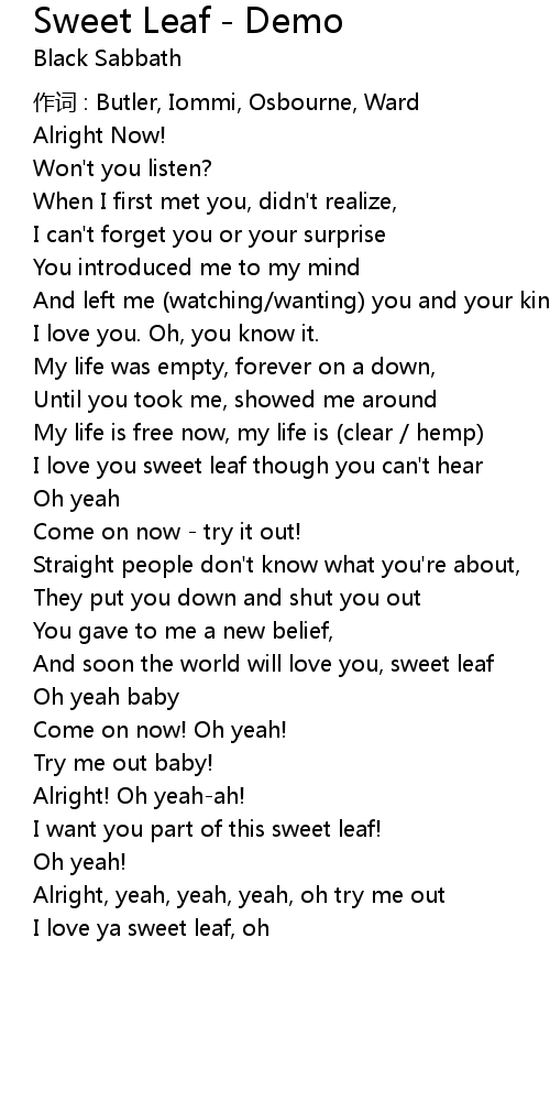 | Song | Sweet Leaf - Demo |