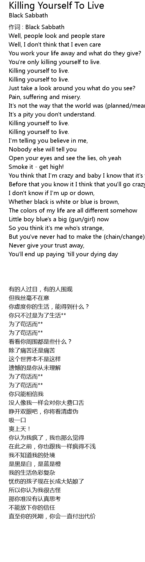 | Song | Killing Yourself To Live |