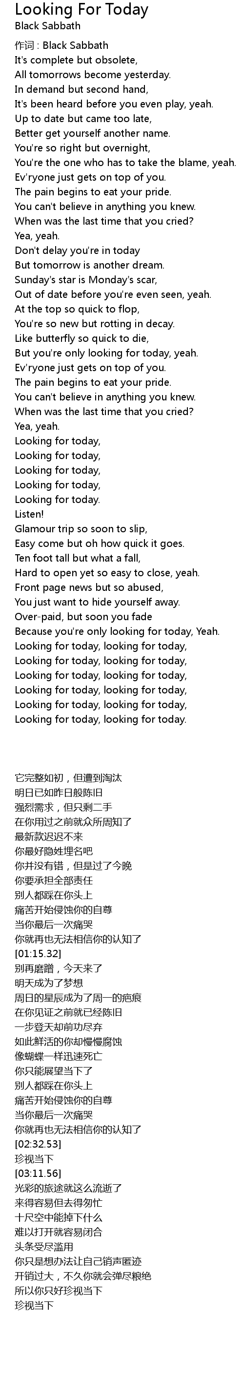 | Looking for today, looking for today, | |